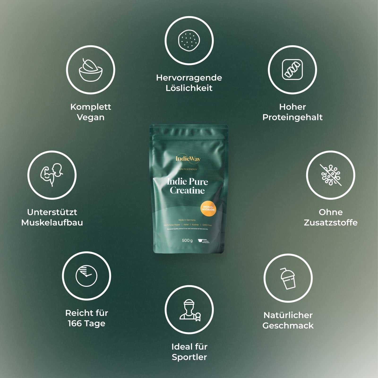 Kreatin ist ein wichtiger Wirkstoff für den Energietransport in den Muskeln. Der Körper produziert selbst 1-2 g Creatin täglich und kann bis zu 5 g speichern. Obwohl Creatin vorwiegend in Fisch und Fleisch vorkommt, sind die Mengen oft gering, weshalb eine Supplementierung sinnvoll sein kann, um mögliche Defizite auszugleichen.
